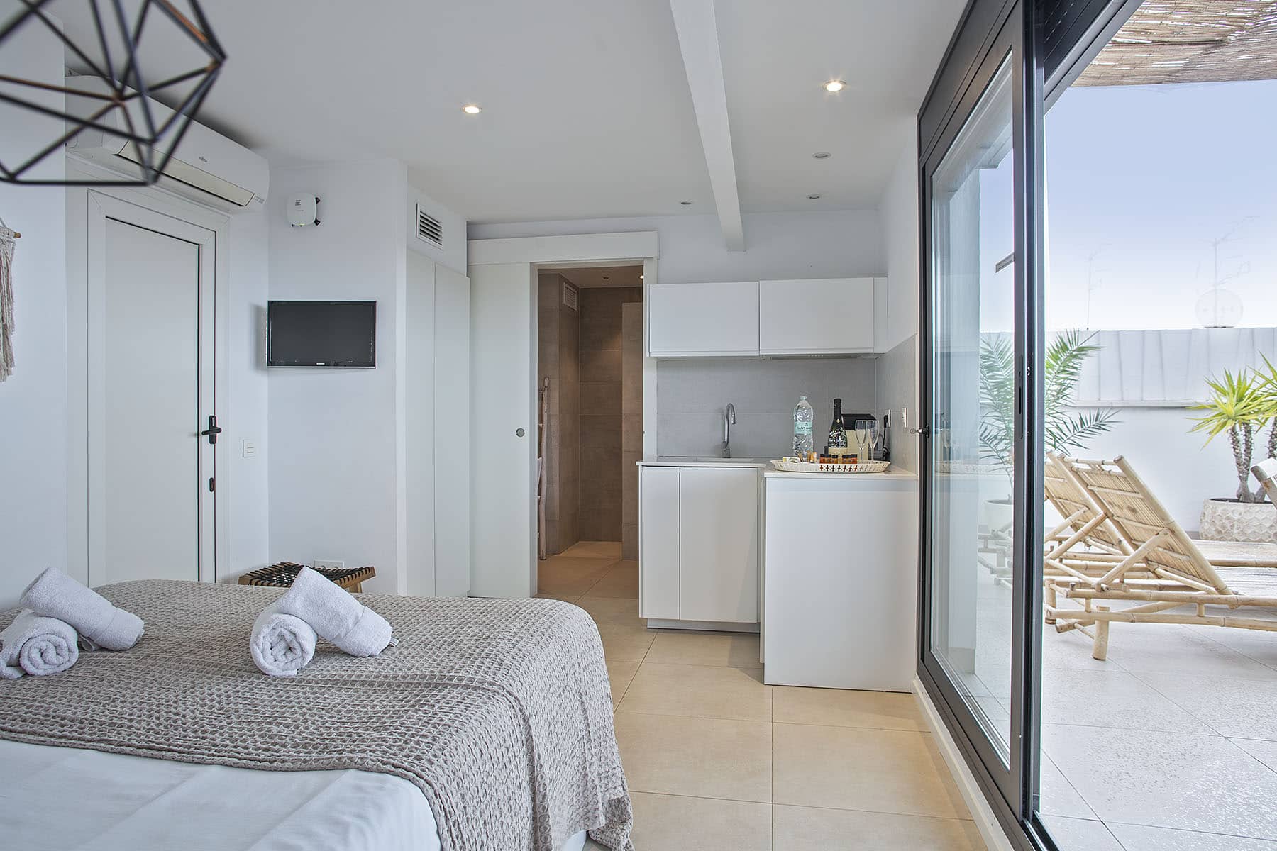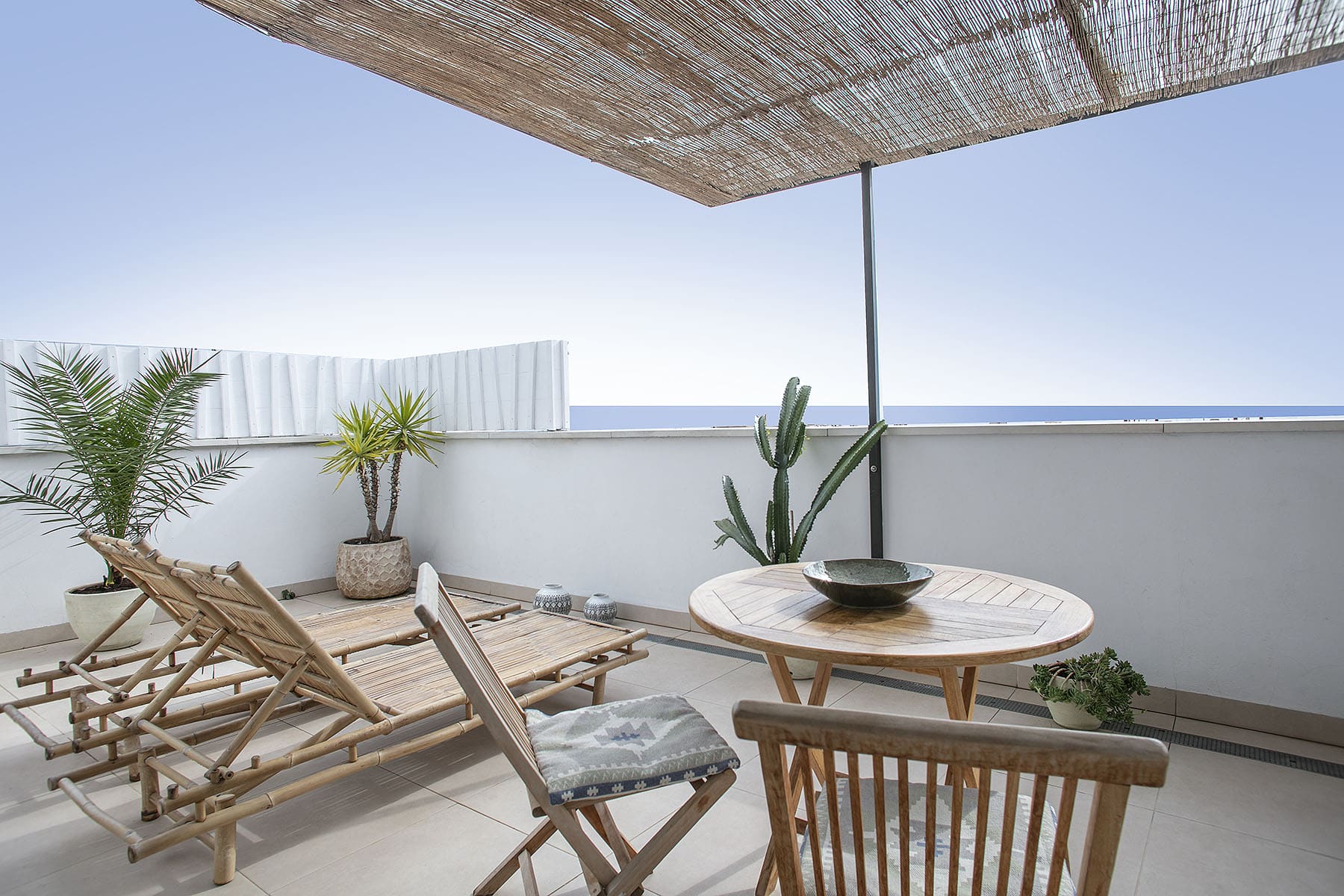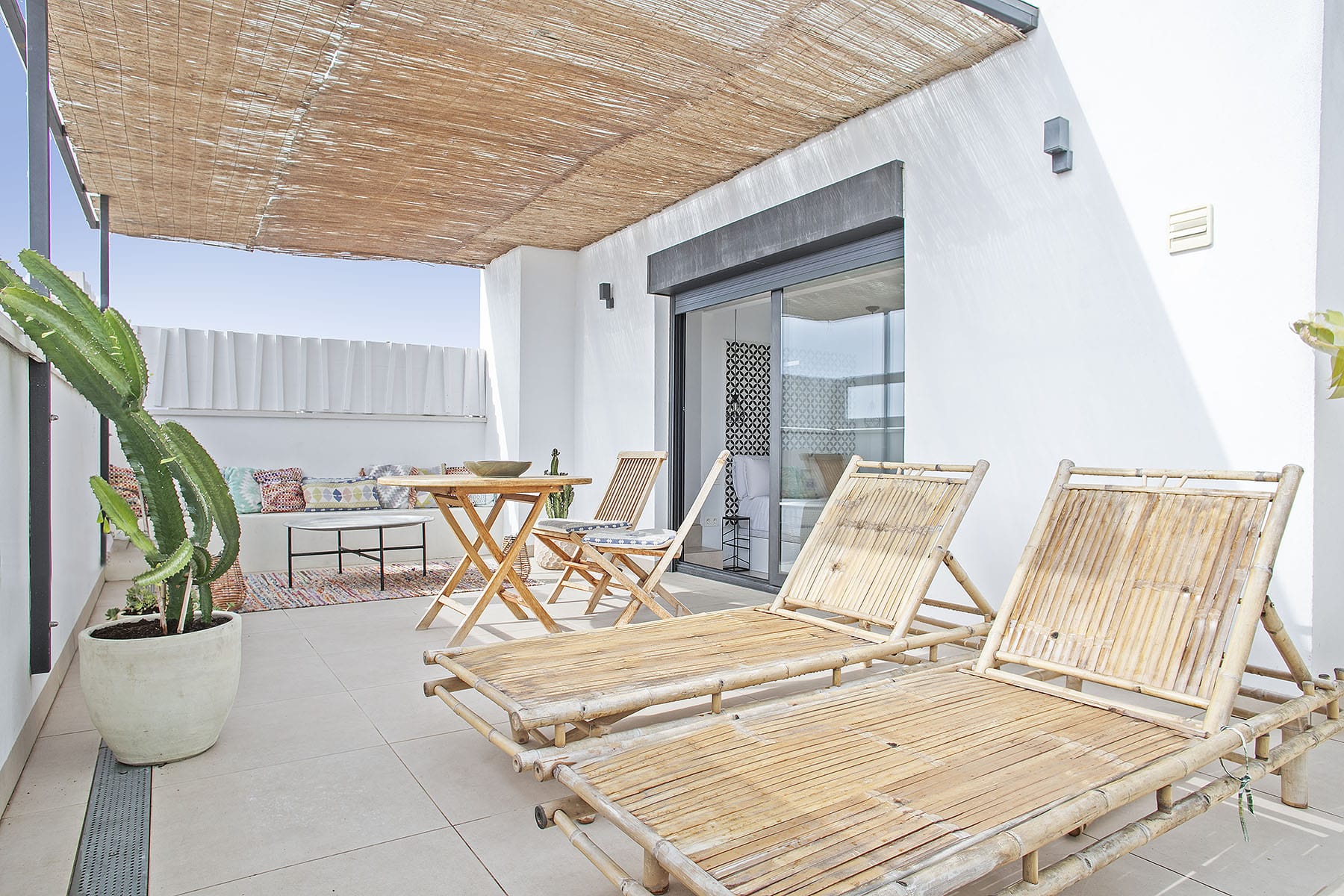 CASA BLANCA és un estudi de 25m2, ideal per a parelles que vulguin gaudir del sol de Sitges. Té una terrassa semi-ensostrada de 30m2, decorada amb un estil bohemi i chic, equipada amb gandules, dutxa exterior i unes magnífiques vistes a la mar!